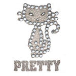 Gems & glitter combine to create a detailed image of a cat with the text "Pretty" underneath.