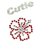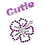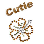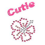 Glittery text that reads "Cutie" with a flower made of colorful gems below.