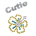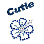 Glittery text that reads "Cutie" with a flower made of colorful gems below.
