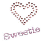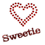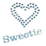 A bold gem-laden heart with the word "Sweetie" in glittery text.
